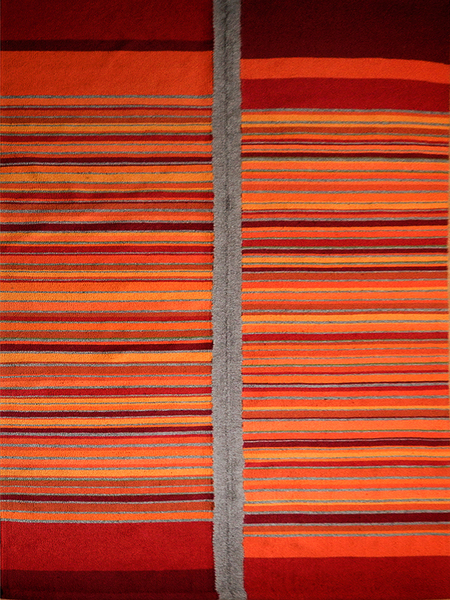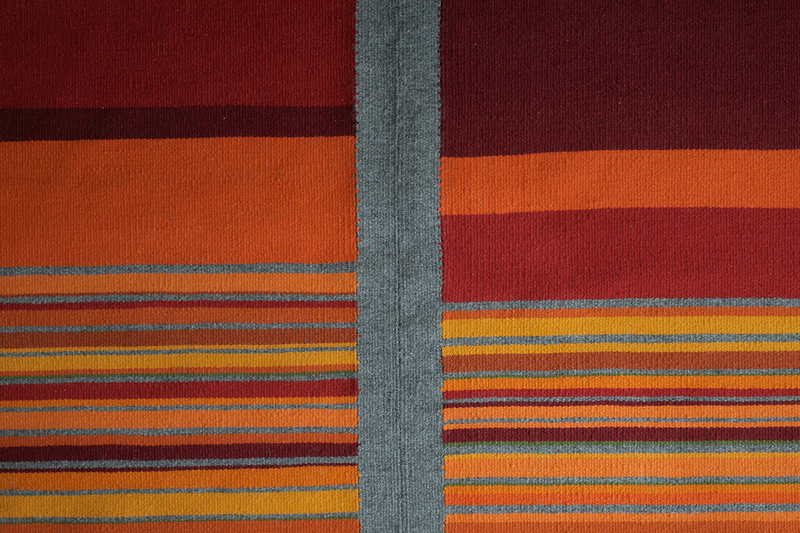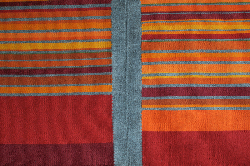 Die Teppiche der Streifen Kollektion sind in Schussripsbindung gewebt mit einer Ketteinstellung wie bei der Webtechnik der Kelims.